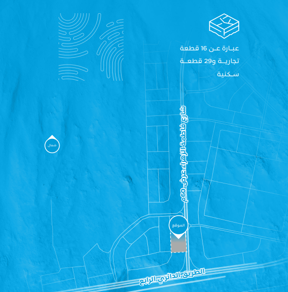 " مخطط تجاري سكني في حي الريان بمكة المكرمة، يتكون من 49 قطعة أرض بمساحات متنوعة ، في موقع مميز داخل حدود الحرم المكي، ويعد من أحد أهم المخططات الحديثة في المنطقة. "